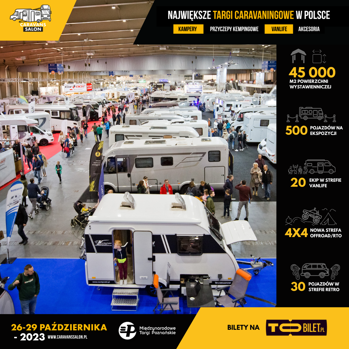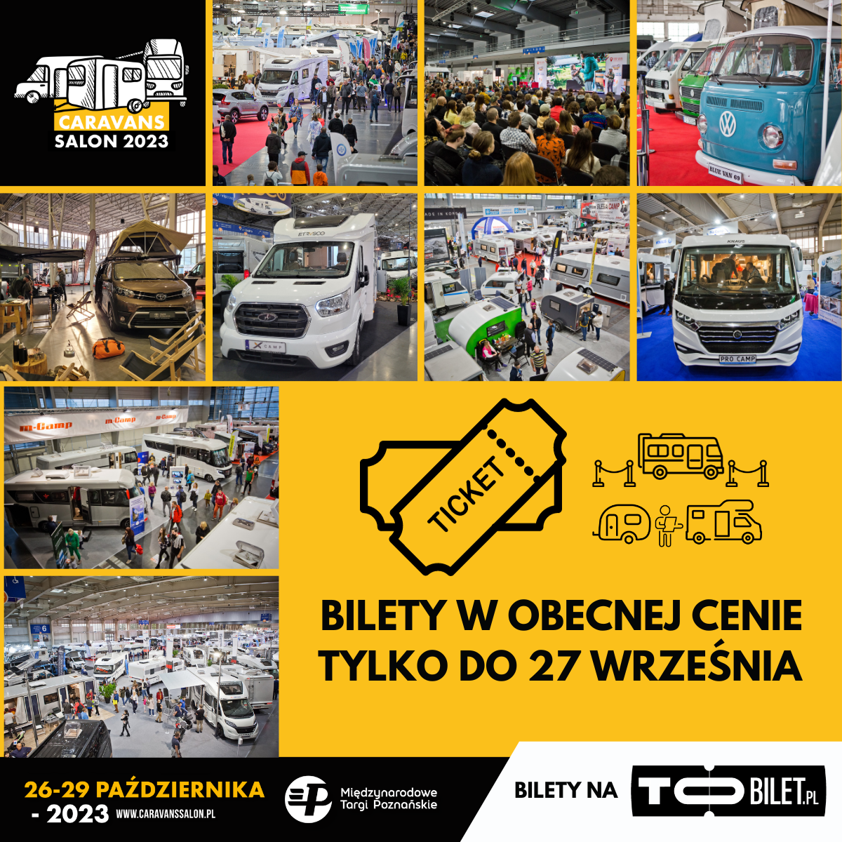 Wejściówki online można zakupić na platformie To.Bilet.pl: https://tobilet.pl/caravans-salon-poland-2023.html